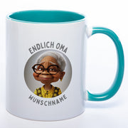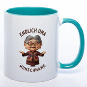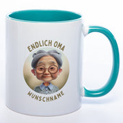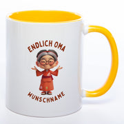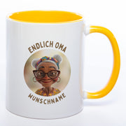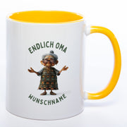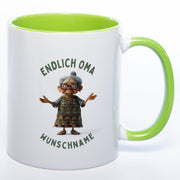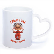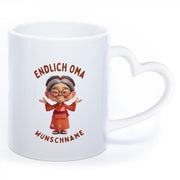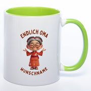 "Endlich Oma"-Tasse mit Wunschnamen - weitere Motive - spülmaschinenfest