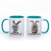 Eine Tasse, die Dich nicht nur mit ihrem lustigen Hasenmotiv zum Lachen bringt, sondern auch mit ihrem  Spruch: "Ich bin nicht süß!!"