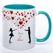 Motiv - Tasse mit Liebespaar, Herzen und 2 Wunschnamen spülmaschinenfest