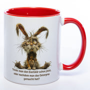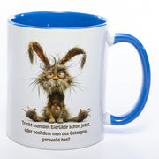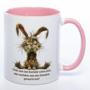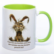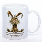 Motiv - Tasse mit Spruch und Hase: Trinkt man den Eierlikör schon jetzt, oder nachdem man das Ostergras geraucht hat? spülmaschinenfest