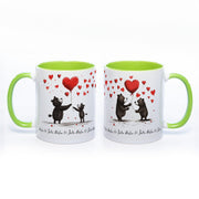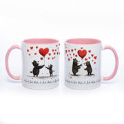 Verliebe dich in unsere spülmaschinenfeste Tasse mit den süßen Bärchenmotiven und 2 Wunschnamen, die unten auf der Tasse im Wechsel rundherum gehen. Ob zum Valentinstag, Jahrestag, Geburtstag, Muttertag, Vatertag... oder einfach so, um einem geliebten Menschen zu zeigen wie sehr er geliebt wird. Mit den niedlichen Motiven ist ein Lächeln bei jedem Schluck garantiert! Damit du lange etwas davon hast, ist sie auch noch spülmaschinenfest - WOW!