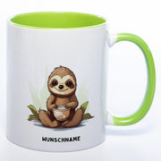 Motiv-Tasse Yogafaultier 2 mit Wunschnamen - Teetasse StickyWorld Exclusive spülmaschinenfest