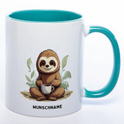 Motiv-Tasse Yogafaultier mit Wunschnamen - Teetasse StickyWorld Exclusive - spülmaschinenfest