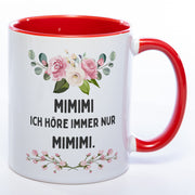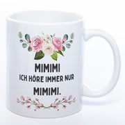 Blümchen-Tasse mit Spruch "MIMIMI ich höre immer nur MIMIMI." - Lustige Kaffeetasse spülmaschinenfest