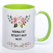 Blümchen-Tasse mit Spruch "Normalität betrifft mich nicht." - Lustige Kaffeetasse spülmaschinenfest