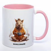 Motiv-Tasse Yogaschwein mit Wunschnamen - Teetasse StickyWorld Exclusive spülmaschinenfest