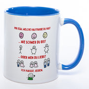 Spülmaschinenfeste Tasse mit Motiven und frechem Spruch "Ich hasse jeden" - Lustige Kaffeetasse