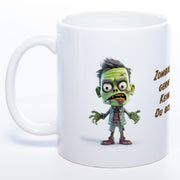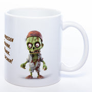 Trotz seines hungrigen Blicks verspricht der kleine Zombie, dass er nur nach deinem Kaffee schnappt – und nicht nach dir! Ein bisschen Spaß muss sein, selbst in der Zombie-Apokalypse. Und keine Sorge um Zombie-Rückstände – die Tasse ist natürlich spülmaschinenfest!
