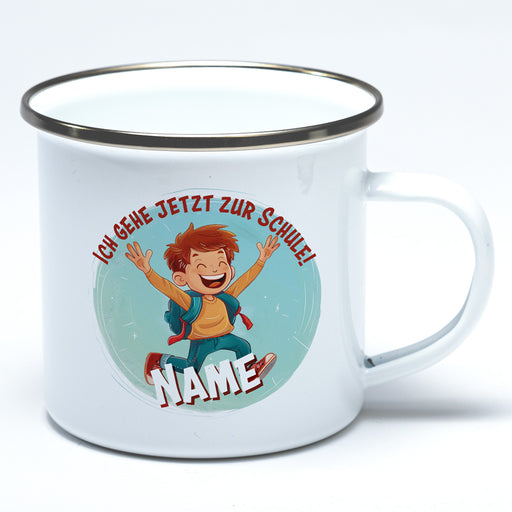 Vollständige Details anzeigenEmailletasse zur Einschulung Motiv Junge und Wunschname- Tolle Geschenkidee
