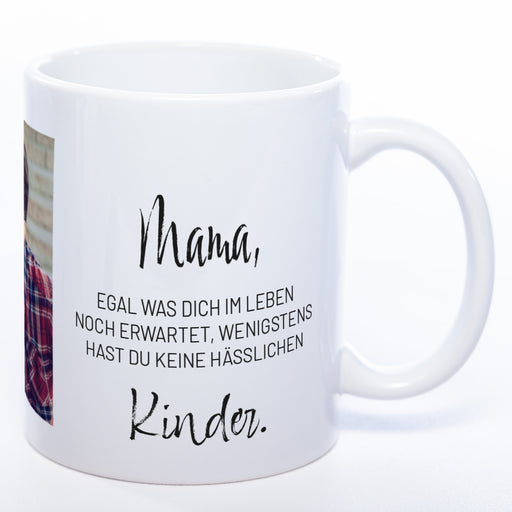 Das perfekte Geschenk für die beste Mama. "Mama, egal was Dich im Leben noch erwartet, wenigstens hast Du keine häßlichen Kinder." Überrasche Dein...