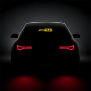 Auffallen, mit dem Schriftzug "FAKETAXI" für die Heckscheibe.